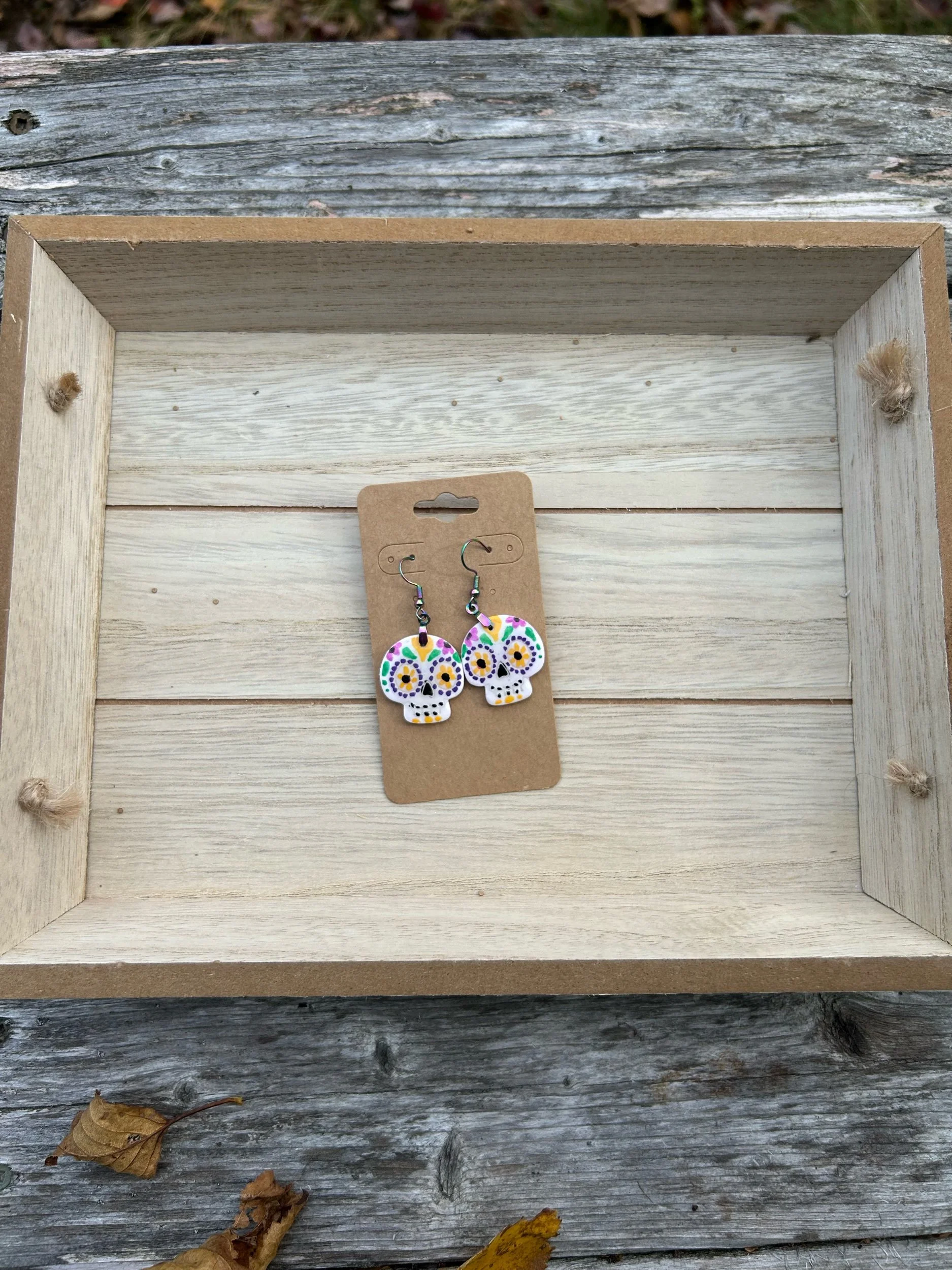 Shop › Halloween sugar skulls Image 1 of 2 Image 2 of 2 Halloween sugar skulls $25.00 Hand painted with acrylic paint, sealed with resin for protection and a lovely shine. Hypoallergenic jewelry findings. Quantity: Add To Cart Added! Hand painted with acrylic paint, sealed with resin for protection and a lovely shine. Hypoallergenic jewelry findings.