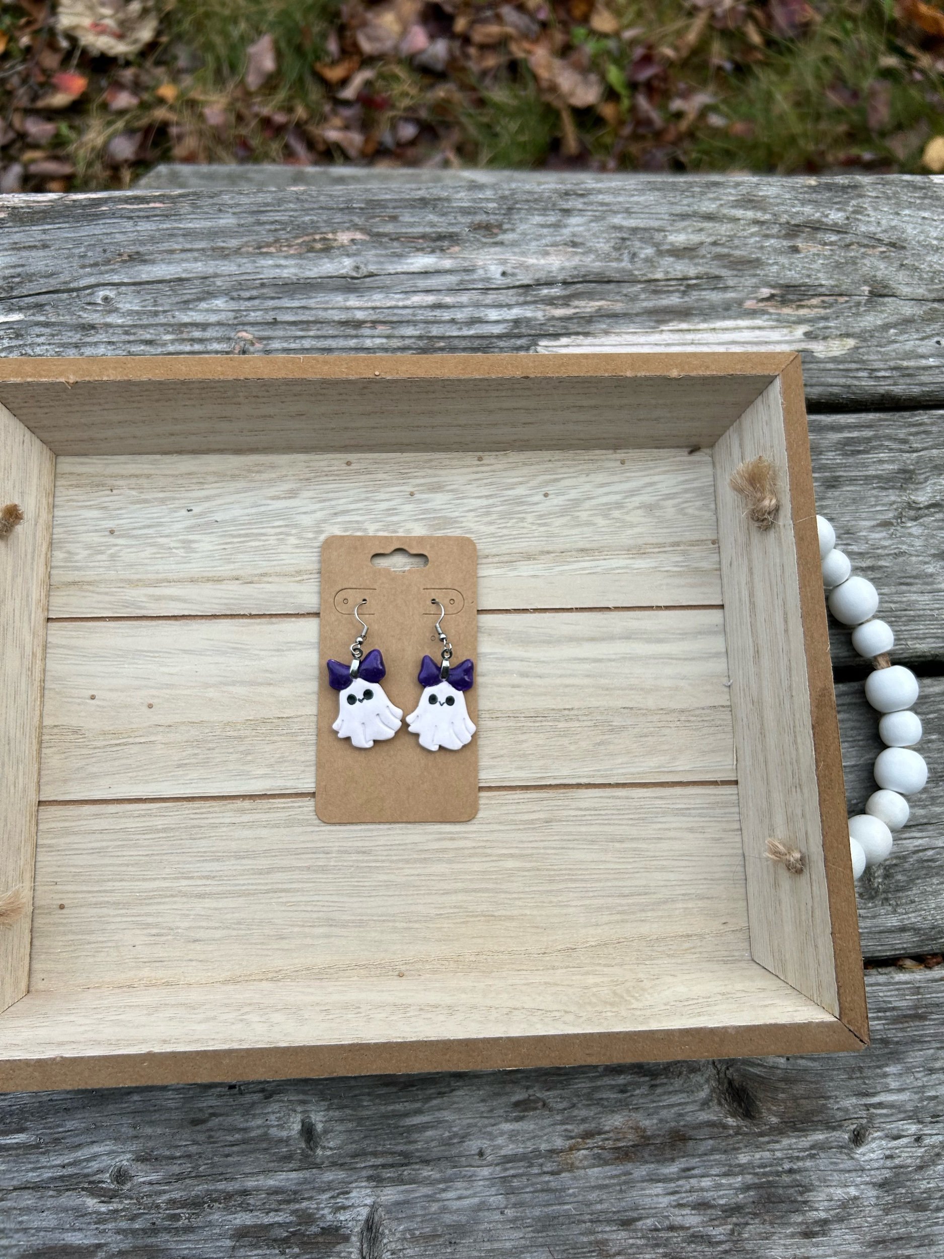 Stay cute this spooky season… polymer clay ghosts with colourful bows coloured with mica powder, sealed with resin. Hypoallergenic earring findings. Too cute !