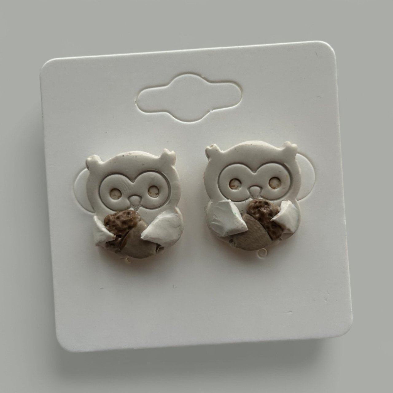 Shop › Autumn Owls Image 1 of 1 Autumn Owls $20.00 Autumn owls… these little ones are holding tiny acorns. Studs made from polymer clay and stainless steel earring posts. Quantity: Add To Cart Added! Autumn owls… these little ones are holding tiny acorns. Studs made from polymer clay and stainless steel earring posts.